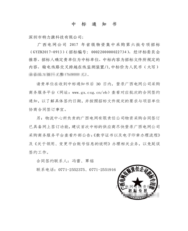 特力康中標國網(wǎng)黑龍江送變電工程公司的2024年度第18次物資類競爭性談判采購項目——慶陽驅(qū)鳥器物資框 特力康中標國網(wǎng)甘肅省電力公司省管產(chǎn)業(yè)單位2024年第五次物資競爭性談判授權采購項目 中標喜訊:深圳市特力康科技有限公司成功入圍許繼集團綜合能源公司輸電線路視頻在線監(jiān)測裝置模塊集采項目 中標喜訊:特力康成功中標國網(wǎng)重慶市電力公司渝中一片區(qū)項目 特力康成功中標國網(wǎng)天津市電力公司2024年第二次?物?資招標項目 特力康中標國網(wǎng)安徽省電力有限公司蕪湖供電公司2024年3月非物質(zhì)采購項目 山東電網(wǎng) “穩(wěn)塔哨兵”:特力康智能桿塔傾斜監(jiān)測預警裝置筑牢電力桿塔安全防線 特力康科技輸電線路高清圖像監(jiān)控裝置,為河南輸電通道筑牢安全屏障 黃土高原護塔穩(wěn):特力康傾斜監(jiān)測裝置為山西電網(wǎng)筑牢根基 黔山冰防線:特力康 “數(shù)據(jù) + 圖像” 雙監(jiān)測守護貴州輸電線路 戈壁林區(qū)的 “火情哨兵”:特力康紅外熱成像裝置守護甘肅輸電線路 內(nèi)蒙電網(wǎng)裝上 “舞動監(jiān)測眼”:特力康輸電線路防舞動監(jiān)測系統(tǒng)守護線路安全 浙江電力裝上“氣象哨兵”:特力康裝置守護電網(wǎng)應對臺風暴雨 蜀道巡線不用“爬”:特力康視頻在線監(jiān)測裝置守護四川輸電鐵塔 風雪中的 “防冰哨兵”:內(nèi)蒙古電力用特力康監(jiān)測系統(tǒng)筑牢覆冰防線 雙軸感知護塔穩(wěn):山西電力用特力康裝置破解采空區(qū)傾斜難題 寧夏配電線路安裝了我司防外破電子化智能警示牌